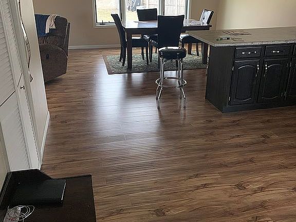 Completely remodeled three bedroom ranch. New kitchen cabinets and counters. New wood flooring in kitchen/dining. New carpeting in living room and bedrooms. Three closets in master bedroom and 3/4 bath off master bedroom. Anderson windows. 28 x 28 detached garage, fenced yard, hot tub, and underground sprinklers.