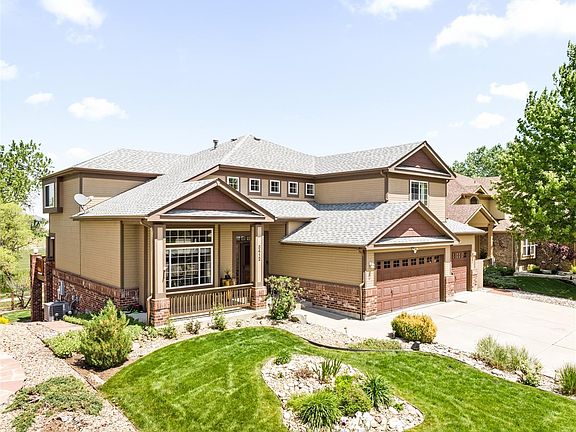 Expansive and luminous, this entertainer’s home offers stunning east-facing views of the Legacy Ridge Golf Course. A picturesque front porch welcomes residents inward to a gracefully flowing layout flanked by floor-to-ceiling windows overlooking golf course views. Adjoined for a seamless flow, a front sitting room meanders into an elegant dining room w/ outdoor connectivity. A bright and open kitchen showcases an eat-in nook, breakfast bar and stainless steel appliances. Grounded by a cozy fireplace, a spacious living area is illuminated in natural light from a vast wall of windows. Enjoy al fresco evenings on an expansive back deck overlooking the fairway of the 7th hole and a serene lake and greenbelt. Restful relaxation awaits in a primary suite boasting a recently updated 5-piece bath. Functional living space is found in a finished walk-out basement featuring a large media room w/ a built-in bar, a flexible bedroom and a workshop w/ an exhaust fan, built-in bench and hook ups for an air compressor.