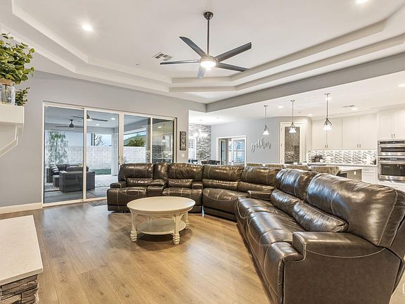 FINALLY - the home you have been waiting for in this highly sought after NW neighborhood! At 3000 sq.ft. with 5 bedrooms, 3 full bathrooms, huge RV space, solar, pool, outdoor kitchen area plus pool house, Xtra large 3 car garage; it's sheer perfection! The unique extended-living design works wonderfully as an attached mother-in-law quarters equipped with its own living room, kitchenette, laundry hookups, bathroom, plus two spacious bedrooms! Courtyard entrance leads into the vast great-room and adjacent chef's kitchen complete with huge center island, quartz countertops, bar seating, 5 burner stove-top, SS appliances, pendant lighting and beautiful 2-tone cabinetry. The endless upgrades include stacked-stone wall accents, LVP flooring, walk-in closets, plantation shutters, recessed lighting, 6 stage reverse osmosis water filtration system, plus more! The backyard is a masterpiece with beach entry pool, upgraded lighting, surround sound system, pool house with bathroom and game room!