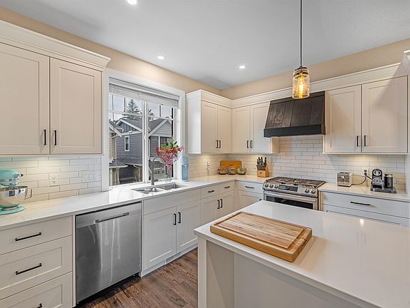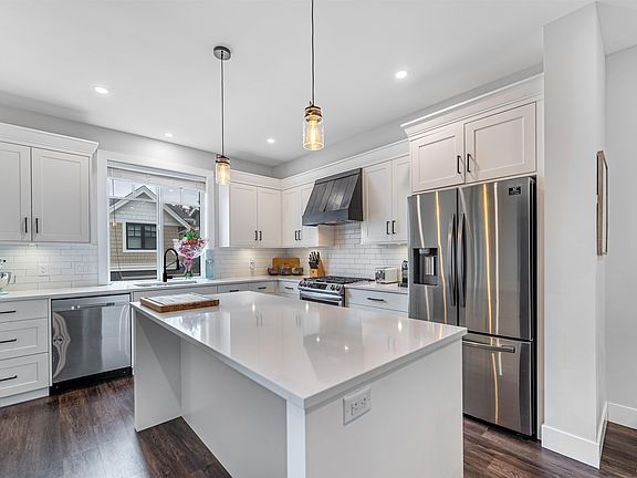 Beautiful newer home in Ferguson Place! Very open 3 bed & 3.5 bathroom home in Central Abbotsford with an additional bedroom on the basement with separate full bath along with a double garage. Beautiful quartz counter-tops and custom cabinets in the kitchen and throughout the home. Plenty of extra parking within the strata and street parking as well. Doors were recently painted black to give a nice aesthetic along with woodwork behind the gas fireplace on the main. Custom made black wood canopy was made after over top main kitchen hood.