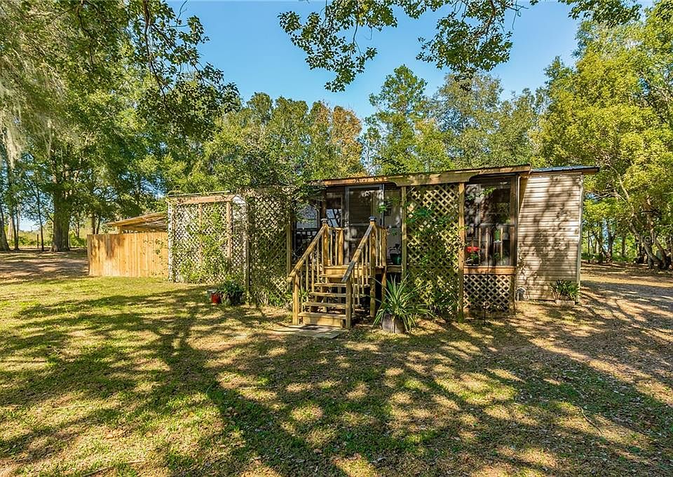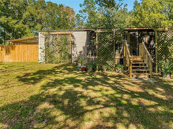 3 bedroom, 2 bath, manufactured home on 1.5 acres of gorgeous, tree lined property. The screened front porch offers wood beam detail and is partially surrounded by latticework providing extra privacy and shade. Inside, you will be delighted by the open floor plan, laminate flooring throughout, vaulted ceilings and abundance of natural light. The 10x11 kitchen offers breakfast bar seating, eat-in dining space and open views to the living room. On the west side of the home, the 13x11 master bedroom features an ensuite bath with solid surface vanity, upgraded light fixture, tub shower combo and a walk in closet. Split away from the master, there are 2 spacious guest bedrooms and a second full bathroom. The roof is metal and the AC only 4 years old.