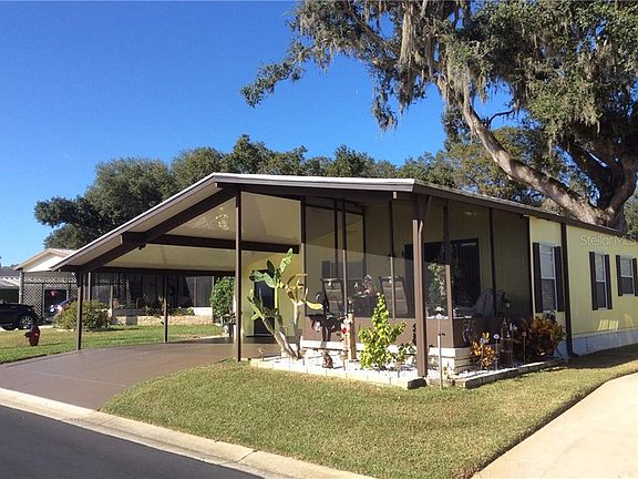 COMPLETELY FURNISHED! 2 bedroom,2 bath, eat in kitchen and separate dining area with built in china buffet. Front screened porch and side screened porch with utility storage areas on both ends. Oversized master bedroom with walk in master closet.Replacement roof, 6 windows replaced and hot water heater replaced. Golf Cart included. Priced right! Fabulous community with no age restriction, 2 pools, 2 clubhouses and activities. Pets ok with some breed and weight restrictions. Easy Tampa commute and close to home store, eateries, gym, Publix, nail salon and pharmacy. Not far from Wiregrass Town Center. Gated community with low monthly fees that include water, sewer, garbage, grass cutting and use of pools and clubhouses. Don't wait, they don't last long!