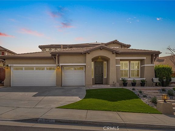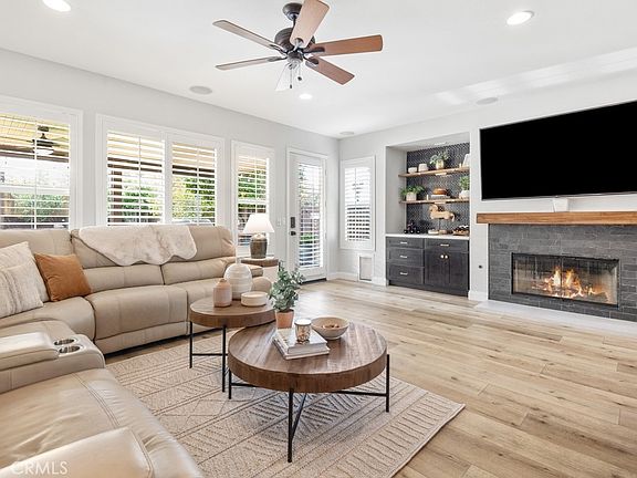 JAW DROPPING, HIGHLY UPGRADED MORGAN HILLS VIEW HOME- Paid Solar Panels! Low Taxes! Low HOA! This impeccably designed home has it all. Turf and professionally designed landscaping set the tone for what's inside. YOU CAN'T BEAT THESE VIEWS- from twinkling city lights to Galleron Park's green grass and brightly colored flowers- the front patio is where it's at! Inside, an open layout flows in front of you with neutral paint, wide plank vinyl, and plantation shutters throughout. Natural light effortlessly pours into this lovely space, making it so welcoming. A Formal Living and Dining Room sit at the front of the home. A DOWNSTAIRS PRIMARY SUITE is the ultimate sanctuary with a dual sided fireplace and a spacious retreat. The impressive Primary Bathroom boasts a custom tiled shower with an adjacent freestanding soaking tub and a TV for the ultimate in relaxation. You're going to LOVE the Walk In Closet- besides being spacious, it has a custom floor to ceiling organizer and a built in safe. There's a 1/2 Bath downstairs that can easily be converted to a full bath- the plumbing is already there! Enjoy gathering in the Living room with a cozy fireplace and built in cabinets with added shelves for storage. This room opens up to the INCREDIBLE KITCHEN where no detail was forgotten. Besides having an abundance of soft close white cabinets and drawers, luxury stone counters, a large island, and designer tile backsplash to elevate this space, this Kitchen has double ovens, a Butler's Pantry, and a Walk In Pantry as well as a deep farmer's sink. Upstairs- 3 Bedrooms share an adjacent Bathroom, which has an added pony wall for privacy, custom stone counters, dual sink vanities, and a shower/tub combo that has been upgraded with designer tile and an upgraded shower Door. There's a "Den" upstairs with double doors too! The Backyard is the SHOWSTOPPER HERE-enjoy the serenity that this VERY PRIVATE YARD has to offer! The oversized pool and spa are perfectly situated, still giving you a large grassy area. One patio cover houses the outdoor kitchen with a BBQ, Fridge, and seating for 4. Another patio cover is perfect for your lounge furniture and fire pit. Twinkle Lights enhance the ambiance while the perimeter is lined with several fruit trees. There is even a dog run and a doggy door! There is a 3 Car Garage and Electric Vehicle Charger. You're in the coveted Great Oak boundary. Morgan Hill is Temecula's PREMIER NEIGHBORHOOD. THIS IS THE ONE YOU'VE BEEN WAITING FOR!