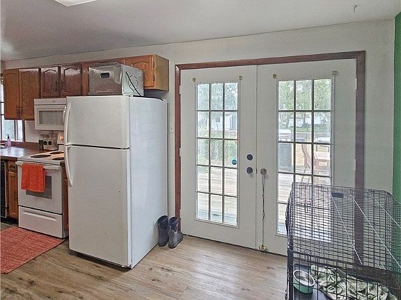 Welcome to this charming 2-story home on a spacious corner lot, just under a half acre. Offering 2 bedrooms and 1 full bath, this property has seen many recent updates, making it move-in ready. The main level features a convenient full bath and laundry area, along with a bright kitchen that opens to a deck through sliding glass doors—perfect for entertaining or simply enjoying the outdoors. Relax on the covered front porch or take advantage of the large lot with plenty of room for gardening, play, or future possibilities. With its thoughtful updates, inviting layout, and generous yard, this home is ready to welcome its next owners.