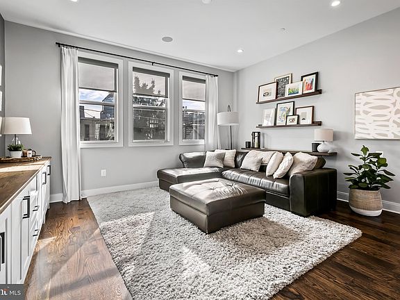 A Rarely Available Brewer’s Green Townhome. Built in 2018. These homes are 17ft wide with 2600 sq ft. of Luxurious Living Space with a 2 Car Garage & an Amazing Rootop Terrace. 10 ft. ceilings and Extra-large windows in the front and rear allow for tons of natural light. Hardwood floors throughout. The main level offers a large living room & dining area along with a gorgeous high-end kitchen. Featuring Quartz Countertops with a matching Waterfall Island, GE Café’ Appliances, Custom soft cabinetry w/ pull-out draws, Wall convection oven, Gas range, & an under-counter Beverage Fridge. Up the stairs are 3 Large Bedrooms w/ en suite baths with custom warm finishes. The top floor has a bonus room for entertaining (or an office) w/ a wet bar and cabinetry before leading to the roof terrace with incredible water and city views. Conveniently located near shops, restaurants, fitness center, and more. Close access to 95/895. Move in ready! Lower Level has potential to be converted to a 4th bedroom & bath.