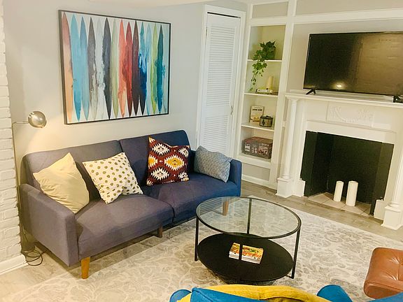 Spacious charming, furnished 1 bedroom 1 bath in heart of Mt. Pleasant. Available for short-term flexible lease lengths. Live in the neighborhood recently dubbed the "oasis in the city" by the Washington Post. This large quintessential furnished English basement boasts over 1,000 sq ft in space and includes a bedroom, kitchen plus island, bright living room area with decorative fireplace and built in book shelves, a den, and washer dryer in unit. It has everything you need for comfortable and independent city living. Two blocks from the Mount Pleasant farmers market, Rock Creek Park trails, restaurants and bars, and bus lines into the city. Utilities are $100 additional payment per month. Rental is separate legal unit with its own certificate of occupancy and separate private entrance. 1BR / 1Ba 1060ft2 apartment w/d in unit street parking Preference for 6 month lease max. Shorter lease terms also acceptable!