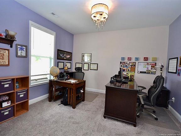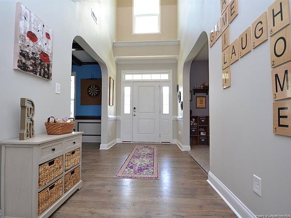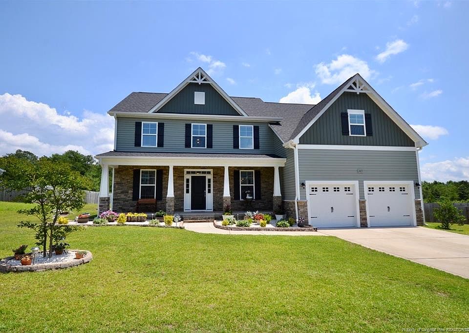 Spacious 5 bedroom/4 full bath home in the desired Jack Britt school district! Home has over 3,400sqft with a fantastic open floor plan. Home has an office, formal dining room with coffered ceiling & guest bedroom with a full bath. Large great room is wired for a surround sound & is open to the spacious eat-in kitchen with an island, granite counter, deep pantry, SS appliances to include a double oven & cooktop range. Upgraded laminate flooring in the foyer, formal dining, great rm & kitchen. Upstairs you'll find 2 spare bedrooms that share a Jack/Jill bath, another bedroom with it's own private bath, large bonus room/media room & laundry rm with a folding station. Huge master bedroom w/a vaulted ceiling, glamour bath w/dual vanity, garden tub, sep shower & an oversized WIC. Covered back patio w/an extra patio & fire pit over looks an almost half acre backyard. great family neighborhood w/sidewalks, playground & pond.