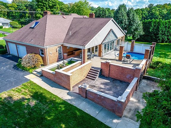 Welcome Home to 3413 Clover Lane! Whether you love to host events or just want your own space to relax, this outdoor oasis has all you need! From the enclosed patio and sauna area, to the outdoor pool built into a multi-level patio complete with a beautiful pond and fountain, to the serene lot - you'll be sure to create memories for life! The inside of this stunningly charming brick ranch boasts a floor to ceiling stone fireplace, vaulted ceilings and wooden beams, and 3 bedrooms and 3.5 bathrooms on the main level. The basement includes a second full kitchen, additional laundry area, and a large bedroom complete with its own full bathroom! Don't miss this gem and all it has to offer!