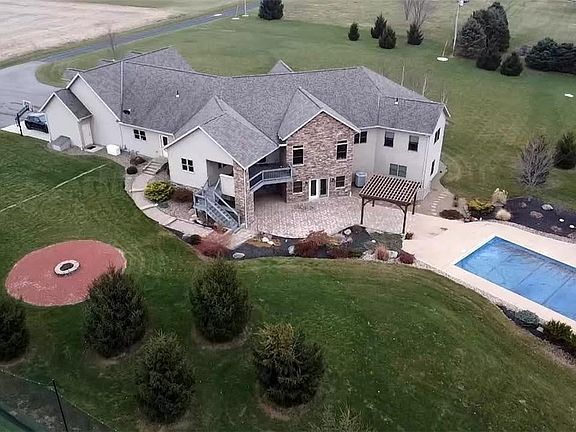 Spectacular country casual elegance. Inviting and impressive situated on over 8acres with fantastic views, 4BRs, 4+ BAs, a deep 3 bay garage, finished walkout lower level and a back-up generator for all major parts of the home. From the arched entryway and architectural symmetry, the welcoming foyer blends comfortable family living with full style entertaining. The kitchen with huge, dedicated pantry custom cabinetry, granite topped island and counters incorporate functional style for the home chef. Work from home private office. A restful retreat beckons the owner to a 5-piece bathroom including an oversized walk-in shower, jetted tub and large walk-in closet. Mudroom/drop zone is conveniently just off the 1st floor laundry room and garage. Sunlight gleefully dances into the open walkout lower level with wet bar/game room and three more bedrooms with baths. From the LL open the doors to the patio, saltwater pool and outdoor fun. Professional land and hard scape. stone paver patio with pergola leading to the inground saltwater pool, batting cage, volleyball and firepit area. What a place to star gaze. Groves of birch. river birch, Norway spruce adorn the property. It's not just a property you're buying, you'll be making years of priceless memories.