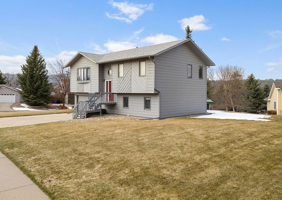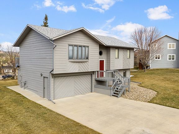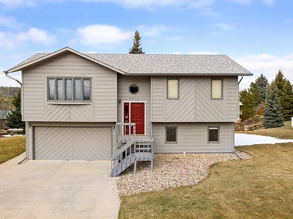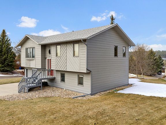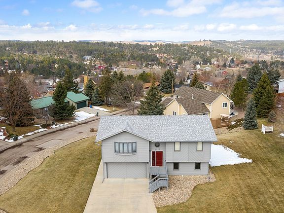 Enjoy beautiful views of the Black Hills from the back deck of this great home. It features a newer roof, gutters, down spouts, exterior paint, and stained decks in 2018. This also offers newer carpet and paint in upstairs bedrooms. There's also newer vinyl planking floors in the kitchen, upstairs bathroom and foyer. Kitchen offers a newer stainless steel refrigerator, stove, and hood. Partially finished basement allows for extra space. Lawn is easy to water with under ground sprinkler system!