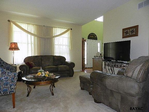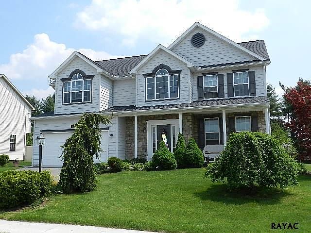This wonderful home is located in Vintage Aces Homeowners Association nestled on a nice .28 acre lot minutes to I83, RT30, parks, schools, shopping and all convenience. Entering the home you will be greeted by a two story foyer with a coat closet and hardwood flooring. There is a powder room and laundry room on the main level. The formal living room and dining room have wall to wall carpet. The family room has wall to wall carpet, a ceiling fan with light and a gas log fireplace with mantel. The eat-in kitchen features vinyl flooring, recessed lights, wood cabinets, an island, built-in microwave, gas range/oven, dishwasher, refrigerator, a pantry closet and sliding door to patio. Ascending to the second floor you will find four spacious bedrooms, two full bathrooms and a hall linen closet. The main bathroom has vinyl flooring and a single vanity. The master bedroom features wall to wall carpet, a vaulted ceiling, ceiling fan with light, a large walk-in closet, an additional 6x9.10 sitting area, private bathroom with ceramic tile flooring, vaulted ceiling, soaking tub, linen closet, toilet room, shower and recessed lights. The second and third bedroom each has a closet and the fourth bedroom has a double closet. Descending to the full basement you will find the utilities, ample storage and an outside entrance. Additional features include a covered front porch, patio and two car garage.