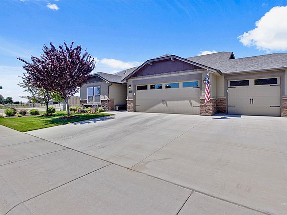 Wonderful 3 bedroom 2 bath home on a corner lot with a 3 car garage! Why wait 6-7 months for a new home when you can buy this well maintained 4 year old home that has all the work already done! Home features full granite countertops in Kitchen, Island and both bathrooms, gas stove, stainless steel appliances, gas fireplace, vaulted living room and master bedroom, double vanity in master bath plus tile shower and double sided huge his and hers sided walk in closet, window coverings, covered rear patio with gas line for BBQ, full auto sprinklers and drip lines, plus almost full vinyl fencing and full gutters. Enjoy your evenings in a large fully landscaped backyard. And did we mention the 3 car garage? Neighborhood includes a large community park with playground equipment and pickleball court.