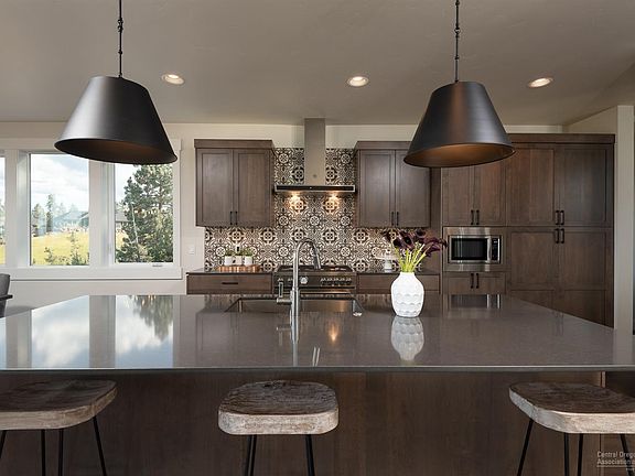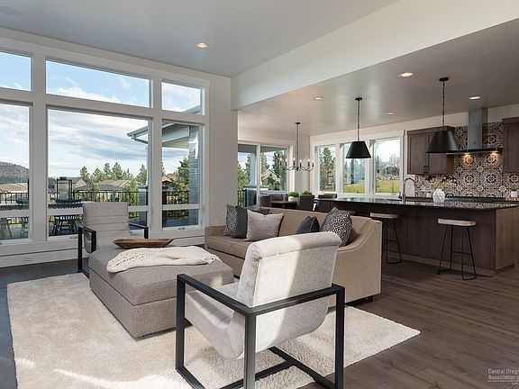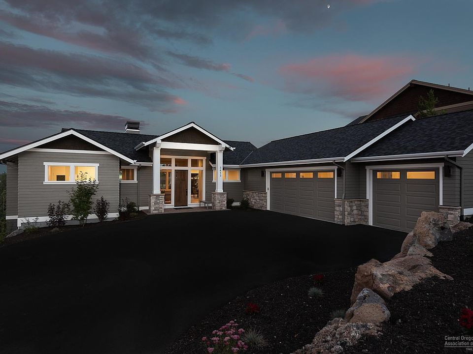 Gorgeous Craftsman home built by Structure Development NW in Rivers Edge. Open floor plan with abundant natural light and expansive views of golf course, Pilot Butte and Ochoco Mountains. Gourmet kitchen with oversized island, plenty of storage and professional series appliances. Great room with gas fireplace, spacious dining area and large deck with covered area for outdoor entertaining. Master suite on main level with spa like bathroom featuring tiled shower, free standing tub and large walk-in closet. Spacious bonus room, three bedrooms, covered deck, full bath and storage room on lower level. Hardwood floors in main living area. Custom Alder cabinetry, solid surface Quartz counters, high end lighting and plumbing fixtures throughout. Italian porcelain tile floors in bathroom, laundry and mudroom. Triple-car garage and fully landscaped. Earth Advantage certified to ensure a sustainable and efficient home.