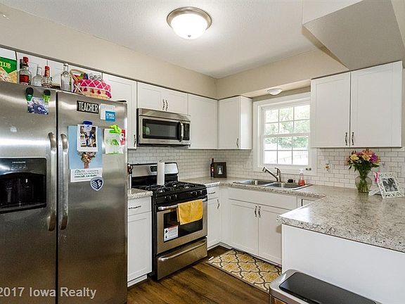 Adorable 4 bedroom, 1.5 bath home conveniently located on the south side of Des Moines. This home has been recently updated over the past few years including, new kitchen cabinets w/stainless steel appliances, subway and tile backsplash. Other updates include updated bathrooms, new vanities, tile floors, newer frieze carpet, newer Pergo floors on upper level, newer 6 panel doors, newer brush nickel ceiling fans in the BRS, and newer hardware throughout. You'll love that this home has a high efficiency furnace, new hot water heater, updated Pella windows, vinyl siding, and architectural roof. The home flows nicely with an open floor plan on the upper level, plus a 2nd living room, 2 extra BRs on the lower level. The outside is just as great as the interior with 24x26 garage with a connected shop on the back adding another 10x20 room. Huge (.36 acres) fenced in yard, completed with a play set and basketball court. Don't miss this opportunity!