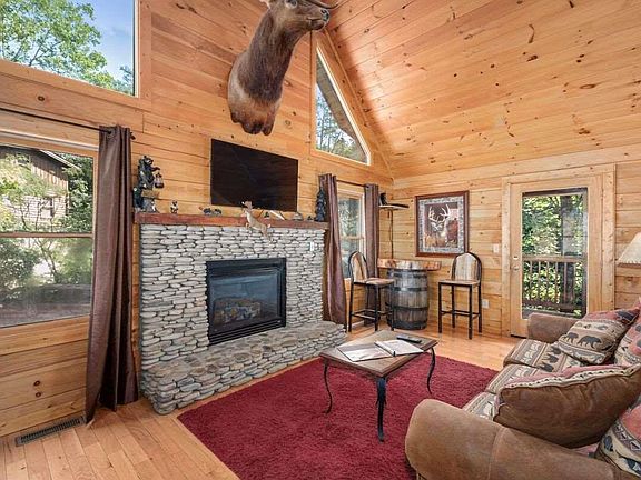 Contract fell due to financing. Very nice 2 bedroom, 2.5 bath log cabin in Pigeon Forge. Excellent location. Close to the Parkway, shopping, restaurants, etc. Features include an all wood interior, large bedroom suites, rec room with a pool table, cathedral ceilings, fireplace in the living room, and a hot tub on the deck. Comes fully furnished and decorated. Already established on overnight rental, but would also make a great 2nd home or even permanent residence. Offered at a great price!