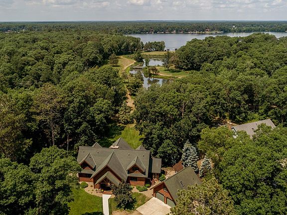 Checkout this up-north retreat with hand hewn log siding and beautifully appointed log accents throughout the home. Located on a 1.41 wood lot with an amazing framed view of a pond & Cross Lake. This home features a large kitchen island, granite countertops, maple floors, 4 season porch, a large great room with vaulted pine ceilings, a massive stone fireplace and a wall of lakeside windows, a huge lakeside deck perfect for entertaining, in-ground sprinkler system, and a heated garage with an upper level seasonal bonus room with 3/4 bath. Enjoy all the Whitefish Chain has to offer with a short walk or a quick golf cart ride to your dock and beach area.