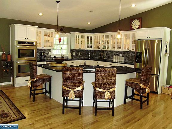 Over 3,500 s.f. of custom built home / Executive Chef's kitchen - Granite counter tops, walk-in pantry, wine cooler, gas range. Master bedroom suite with private bath and walk-in closet. Double sided fireplace between Master Suite and Formal Dining Room. Reading nook with built-in book shelves. Bonus room with 270 degree of private back yard and entertainment deck. Bonus room could also be that 4th bedroom. Nearly 1,000 s.f. game room / media room. Oak and ceramic flooring. 2 stall attached garage and a 40x45 insulated and heated detached garage. Selling well below replacement cost all on 21 acres with mowed trail. Minutes from downtown and all black top roads.
