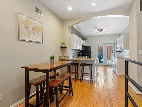 Location, parking and rooftop deck in the heart of Canton! Updated row home just a few steps from bars, restaurants and shopping. 2 bed, 2.5 bath, over 1,000 sq ft of finished living space, hard wood floors throughout and classic Baltimore row home exposed brick walls. Kitchen peninsula with granite countertops, stainless steal appliances (refrigerator 2021) and under cabinet lighting. Main level consists of living room, dining, kitchen and half bath. Upstairs you can find a primary bedroom with vaulted ceilings, and second bedroom that leads to your 2nd level deck and roof deck, as well as 2 full bathrooms with custom tile. Finished basement, perfect for office space or additional area for entertainment. You can find laundry in the utility room with newer furnace (2019) and newer water heater (2020). HVAC condenser 2017. 3 levels of rear decking, including a brand new roof top deck (2022) with new roof (2022). Newly poured concrete parking in rear of home (2017) along with 1st level deck, perfect for grilling.
