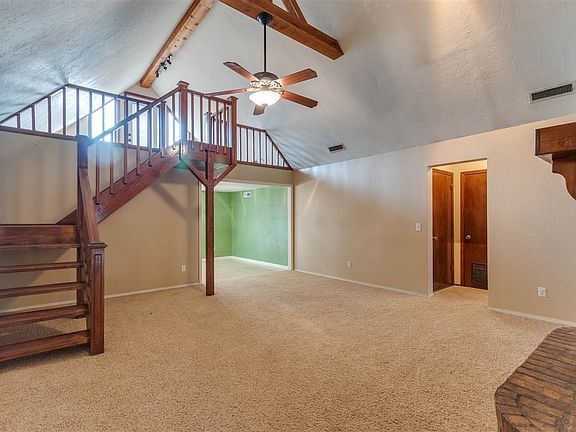 This home sits on a quiet street with the back yard open to a pasture. Enjoy sitting in the loft reading, sewing, or hobbies. It opens out on to the balcony to drink your morning coffee, and watch the sunrise. Three bedrooms with master bedroom bath separated from other 2 bedrooms by the living room dining.