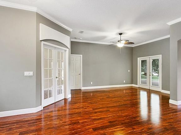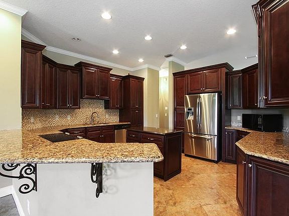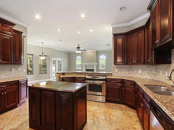 Quality built beautifully manicured executive 4/3/3 2610 sq foot home with den/office on your own tropical oasis. This home was designed in a 3 way split living plan and sits on over 1.3 acres in one of the most sought after locations. Your new home features many tropical fruit trees around 3-7ft tall including: palm trees, avocado, peach, guava, mango, orange, longan, lemon, lime trees, large oaks, open field & grape vine arbor. This home has been updated beautifully with a kitchen that is at the heart of the home that overlooks the family room with a conversation bar. Kitchen features a center island, espresso wood cabinets, soft close drawers, 42' inch uppers, tile back splash with quartz & granite counter tops & stainless steel appliances. Ceramic tile, wood flooring & frieze carpet, high efficiency air conditioning heat pump, 5 1/4 inch baseboards & gas fireplace. The master bedroom features his/her closets and a large grand master bathroom with a jetted tub. Bedrooms 2 & 3 share a 'jack& jill' bath. 4th bedroom is at the rear of home next to a full bathroom that can be used as a cabana bath if pool is added. French doors lead you to an over sized screened patio & a 10 x 20 shed w/ 60 amp electric service. All this without an HOA, very close to shopping and restaurants, as well as A rated schools.