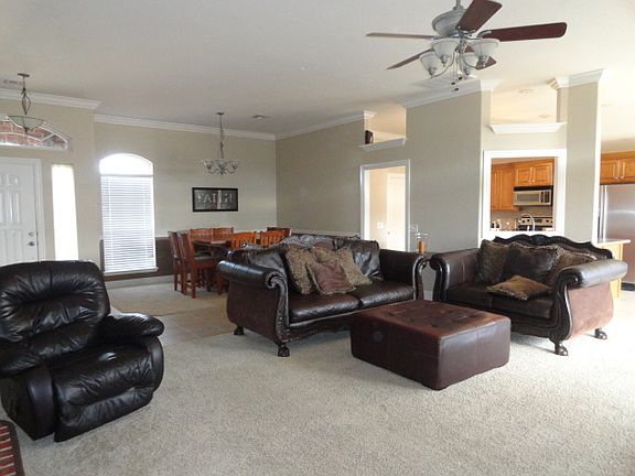 This home was built in 2005 and is move-in-ready. It offers an extra large living room with 9-10’ ceilings, imitation fireplace with gas logs, and formal dining space. The kitchen is spacious and has a walk in pantry and breakfast/dining area. Master bedroom has a door to access the patio, a large closet/changing room and the shower insert has been upgraded to a tiled shower. The carpet & tile has just been professionally cleaned throughout the house and the living room recently painted. The backyard is spacious and the wood fencing is resting on concrete curbing. Located in the Westgate addition across from the Simmons Center. Quick and easy access to the bypass and walking distance to the middle school, community center, and museum. This home is waiting for its new family. Listed by: Susan Shaffer www.SUSANSHAFFER.net 580-251-0618 Preferred Real Estate