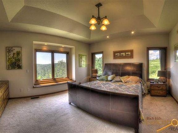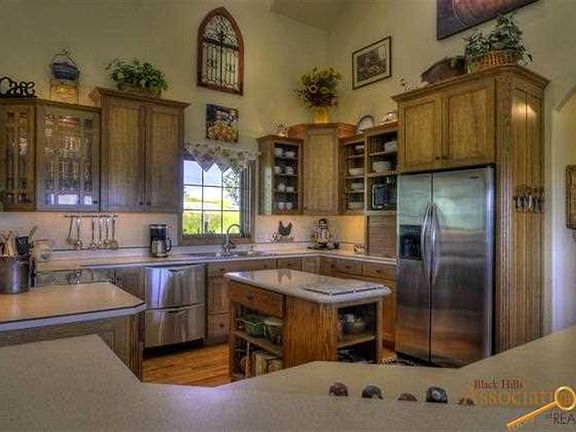 You will find a wonderful setting at 3414 skyline heights court. Beautiful hills views with many wild life viewing opportunities including turkey, deer and the occasional fox. As you step into this home the huge bank of south windows affords you views of the hills that is just spectacular. The thirty foot ceiling complements the open kitchen and living room floor plan. Just perfect for entertaining. There is also a eight seat breakfast bar along with a formal dining room that will seat ten more guests. The master bedroom and office are located on the main level. There are three more bedrooms, family room and wet bar in the lower level. All this sits on five easy to maintain acres. You have a secluded black hills setting yet you are only five minutes from the hospital and seven minutes to down town. Just a lovely in town Black hills home.