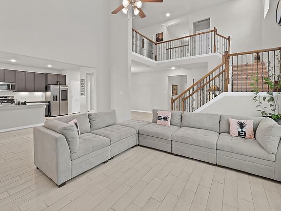 Beautiful house almost brand new with Elevated high ceiling and no backyard neighbors, Tile flooring, wrought iron spindles, faux wood blinds, cast stone fireplace, guest suite with bath, sprinkler system, and a covered patio. Master new recipes in the kitchen, complete with granite countertops, tile backsplash, stainless steel appliances, 42" upper cabinets, and undercabinet lighting. With dual vanities, a 42" tub, and a separate shower, the primary suite is the perfect place to relax after a long day. Community comforts include a playground, splash pad, children's play area, and a recreation center with a pavilion. Located off I-10 and the Grand Parkway, residents enjoy close proximity to popular dining and shopping at the Katy Mills Mall. Schools are zoned to the acclaimed Katy ISD.