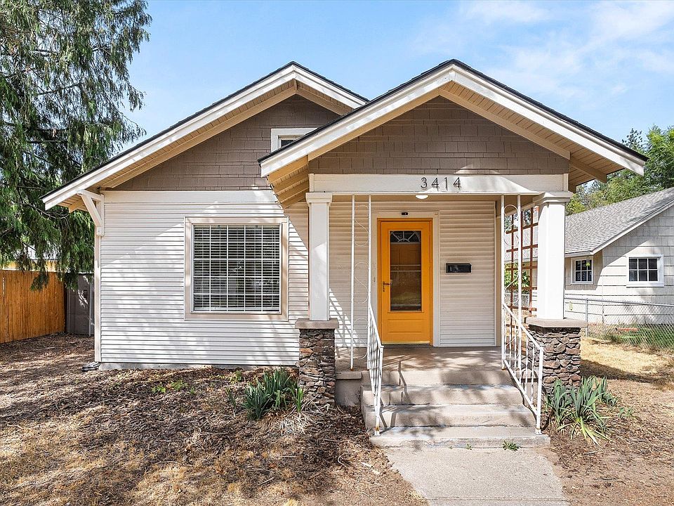 This adorable 1 bed, 1 bath bungalow is nestled in a desirable Shadle/Audubon neighborhood, offering single-level living and an open floor plan. The home boasts an updated kitchen with slab granite counters, stainless steel appliances, and a breakfast bar. Other updates include a spacious bathroom with laundry, refinished original hardwood floors, newer vinyl windows & vinyl siding. The living and dining area, along with the generously sized bedroom, provide a comfortable living experience. Additional features include off-street parking, alley access, a shed & fenced front yard. This centrally located home is just minutes from shopping, dining, and local attractions like Dwight Merkle Sports Complex, Riverside State Park, Downriver Golf Course, and more. All appliances stay, making this move-in ready home a true gem in NW Spokane!