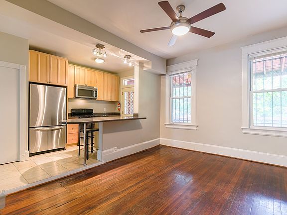 Historic charm and ample square footage make this two-story row house in Park View a perfect place to call home. This cozy nest has high ceilings, hardwood floors, and lots of windows. The updated kitchen boasts granite counters and stainless steel appliances - a great space to cook and spend time with loved ones. Out back there is a spacious deck and large yard to enjoy. With a half-bath also on the first floor, this place is ready for entertaining! Upstairs you'll find a generously-sized main bedroom with large windows and an en-suite bathroom. The second bedroom is also nicely-sized and conveniently adjacent to a large hall bathroom. The third room provides versatility could easily work as a bedroom, guest room, office space, or whatever else you may need it for. Street parking is convenient and tenants may also use one space in the backyard. With bus routes all along Georgia Ave, as well as the nearby Georgia Ave/Petworth Metro Station, commuting from this location is a breeze! Security deposit is equal to one month's rent. Tenants are responsible for electric and gas, as well as a $100 flat fee for water. Pets are welcome! To schedule a tour, please use the listing for the most accurate and up to date availability. Nest DC happily accepts applicants whose rent is paid either in part or in full via rental housing assistance provided by the District or federal government.