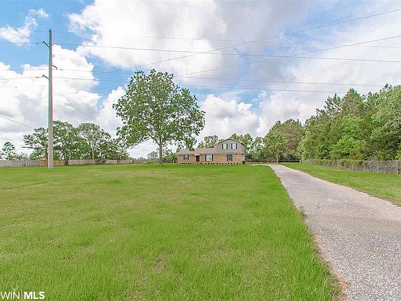 This Beautiful 4 bedroom 2 bath home sits on 1 acre, fully fenced and surrounded by mature trees. Recent updates include: Interior and Exterior Paint (neutral color), Refinished, Smooth Ceilings and NEW Landscaping. The spacious Master Suite has 2 large, separate closets, and an exit onto a private deck, overlooking the expansive back lawn. Downstairs you'll find the other 3 bedrooms, and Large bathroom. The kitchen opens into the dining area and overlooks the living room, for an open concept atmosphere. The Double car garage is connected to the laundry room and spacious utility room, offering built-in shelving and extra storage space. Enjoy the beauty of nature from either back deck! Imagine the possibilities for making this property your own; grilling out with friends and family, or maybe add a pool! With Bay Minette just 20 minutes to the north, and the Malbis/Spanish Fort area 20 minutes to the south, all the conveniences of these nearby towns are readily available. Also, access to Interstate 10 is only 14 minutes away, a convenience for commuters to Pensacola or Mobile! Call TODAY!
