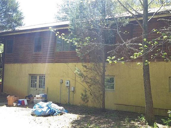 Log cabin situated on nearly 3 acres. Peaceful wooded lot. Full unfinished basement. So much opportunity to make it as you like it. 2 bedrooms 3 baths on main floor. Beautiful wrap around porch to enjoy the wind whispering through the pines. Close to town but leaves you feeling you are at your own mountain retreat.