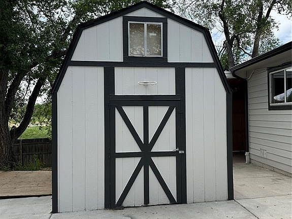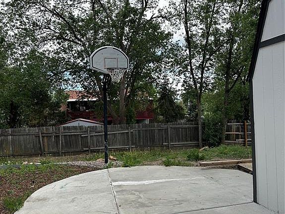 Check out this stunning 4-bedroom, 2-bathroom home! It features a newly painted exterior, plush interior, and laminate flooring throughout the bedrooms. The fourth bedroom has a new half bath that can be used as an office or fitness room. The spacious living area is divided from the kitchen by an elegant stone finish arc wall. The large enclosed carport can fit two vehicles and has an open back exit for parking a boat, camper, or RV. There's also a shed for storage and a backyard basketball hoop. The roof and exterior have been recently upgraded with durable fiber concrete siding. The home is located in a mature neighborhood near Fort Carson and Peterson Air Force base, with no HOA. It sits on a 7900 square feet fenced corner lot, with fresh landscaping and a new middle school across the street. Don't miss out on this remarkable house!