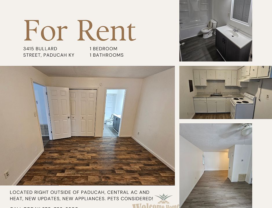 1br 1bath close to Paducah shopping and businesses. On dead end street. Water, sewer and trash included in rent also lawn care included. NO SMOKING in the house. Pets considered with a one-time $350 non-refundable per pet fee and $25 a month fee. Application/Credit/Background Check/Security Deposit/ 1-year Lease required. 1 year