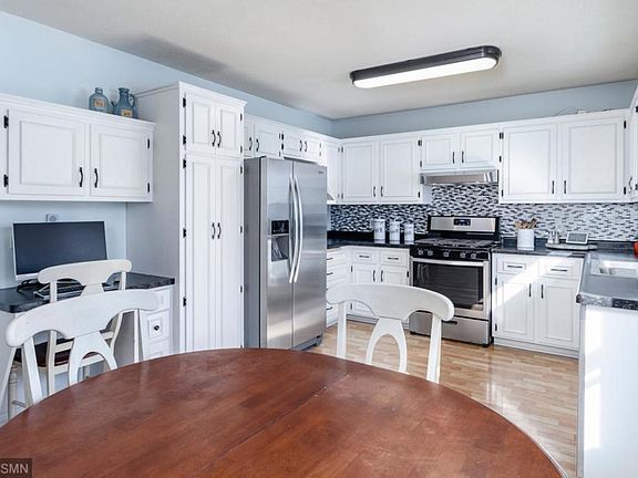 Walk-out ranch with 4 bedrooms, 2 baths and main floor laundry! Modern kitchen with white cabinets and brand new appliances. Living room with a wood burning fireplace and great views of the wooded backyard - completely fenced in! Master suite with access to updated full bath. Must see!