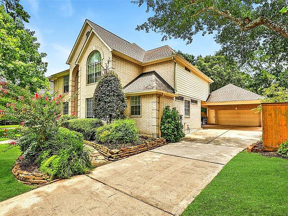 A lovely 5 bedroom with a pool spa, porte cochere & on a quiet culdesac street in a conveniently located intimate neighborhood. Recent elongated tile flooring (looks like wood) throughout the 1st floor. Inviting foyer with formal dining room & handsome study on either aside. This leads to a beautiful den featuring a fireplace & a wall of windows overlooking the pool. Open concept island kitchen has granite, custom cabinets & large bar accented with pendant lighting. Kitchen features SS Appliances, induction cook top, convection oven, broiler & microwave. Refrigerator stays. Windows all across the back of the home offer view of pool from den, breakfast & master bedroom. The master bathroom has jacuzzi tub, separate shower, 2 large closets & separate vanities. Upstairs is a huge gameroom + 4 bedrooms. Enjoy a large heated pool and spa surrounded by pool decking. Home has water softener & under sink water filtration system
