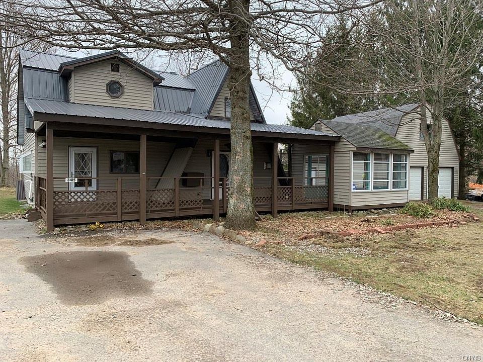 Home includes a spiral staircase up to the loft, first floor laundry room with cabinet space, vaulted ceilings with tons of natural light in the family room, woodstove, spacious eat in kitchen with island work space and guest quarters above the garage. Features new propane furnace, interior paint, kitchen countertop and carpet.