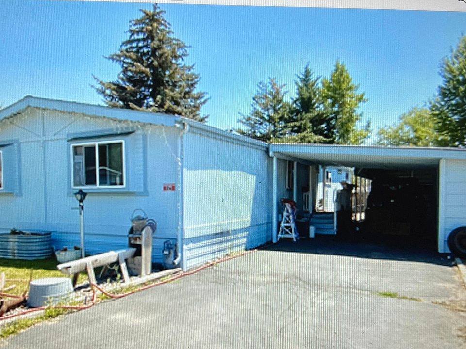 This large manufactured home in the Crest Street Mobile Home Park is at the end of the street with a large fenced yard, covered patio porch, storage sheds, and double length carport with storage cabinets. Living area is spacious, bedrooms are good size, and there is a large laundry room.