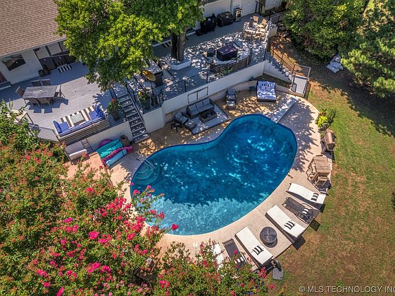 FULL remodel complete in Jan.'21. Jenks schools. ONE story. Conveniently located near Southern Hills, major highways, and shopping. This is an ENTERTAINERS DREAM home on over a 1/2 acre lot with an abundance of mature trees. Backyard has all new composite decking and wrought iron railing designed and added with dual staircase down to Gunite, diving pool with new designer tile. All custom ordered designer finishes throughout. Professional indoor/outdoor lighting. Spa like master bathroom & a DREAMY closet with island and walkthrough to the utility. Master suite has access to back deck. Wonderful chefs' kitchen with Top of the line- KitchenAid appliances, 12ft island, pot filler, instant hot water, in drawer microwave, convection oven, butler's pantry with a Dutch door. 3rd bedroom is currently used as a home-gym with custom floor to ceiling mirrors. Oversized 2-car garage. Game room with wet bar. 2 fireplaces, Office or formal dining, corner lot, professional landscape, security system, indoor/outdoor surround sound, custom powered window coverings. Three 8ft. sliders on back of home overlooking pool and views of south Tulsa. There is too much to list!! Listing agent is seller.