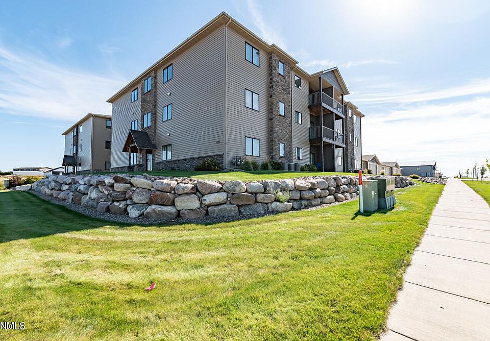 Enjoy care-free living in this ground level condo in NE Bismarck. You will love the open floor plan. The kitchen has ample cabinets, high-definition counter tops and stainless-steel appliances. Off the dining area leads do your own private patio area which faces east. This patio is perfect for sitting outside and enjoying your morning coffee while the sun rises! The living room is spacious. There is new flooring throughout most of the unit. There is a primary suite with walk-in closet and bathroom. There is a full bathroom and laundry area along with a second bedroom. The new washer and dryer are included! You are sure to appreciate the attached 2-stall garage. No walking outside in the cold winter months from your garage to the condo. This unit is located across from Legacy High School. It is conveniently located close to grocery stores, restaurants, walking paths and more. HOA handles snow removal, lawn care and exterior insurance. Pets are allowed. There is an elevator in this building. Call today to schedule a showing!
