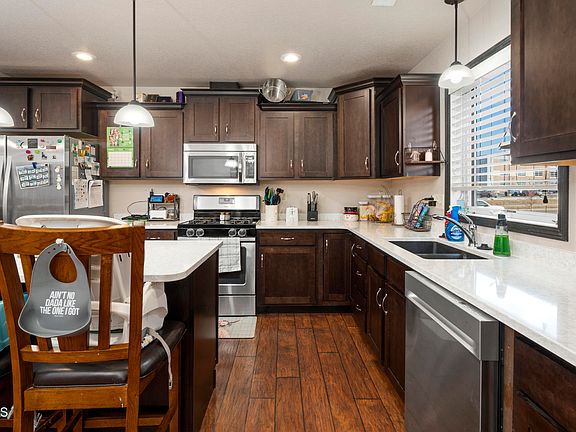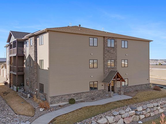 Enjoy care-free living in this ground level condo in NE Bismarck. You will love the open floor plan. The kitchen features quartz countertops, dark custom cabinets, gas range, brand-new dishwasher, and large island. Off the dining room leads to a nice patio area, which faces east. The primary bedroom includes a bathroom with walk-in shower. There is also another bedroom, full bathroom, and laundry room (washer/dryer are included). The 2-stall garage is connected to the building so no need to walk outside in the cold winter months. The garage includes shelves for additional storage. This unit is located across from Legacy High School. It is conveniently located close to grocery stores, restaurants, walking paths and more. HOA handles snow removal, lawn care and exterior insurance. Pets are allowed (25 lb weight restriction). There is an elevator in this building. Call today to schedule a private showing.