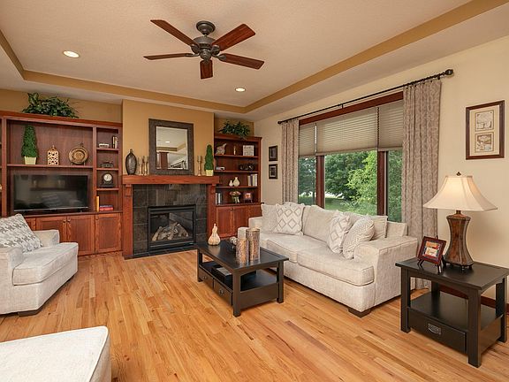 Welcome to your dream home! This stunning property boasts 4 spacious bedrooms and 2 1/2 baths. The living room features a gas fireplace and and custom built in cabinets. Hardwood floors span most of the main level. The kitchen is equipped with stainless steel appliances new in 2022, center island and a walk-in pantry. The primary suite is conveniently located on the main level, offering easy access and privacy. You will find the lower level perfect for entertaining with the large family room, beautiful fireplace and wet bar. The house is surrounded by beautifully maintained landscaping, sprinkler system and a deck, perfect for enjoying the outdoors. Roof is 1 year old. This home is designed for both comfort and style, offering a perfect blend of luxury and functionality. Gas lines to the deck and garage are a bonus for future garage heater and option to connect to grill on the deck. Don't miss the opportunity to make this exquisite property your own!