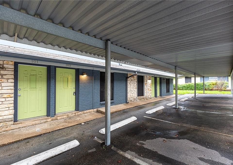 Small 16 unit community and great townhome style layout with kitchen and living downstairs and 2 bedrooms and bath upstairs. Covered parking directly in front of your door. New lighting and paint and remodeled bathroom vanity. Laundry on-site within a few feet of your front door. Excellent South Lamar and Manchaca Road location in 78704 and walkable to a lot of South Lamar entertainment and food establishments. 102 and 103 also available.