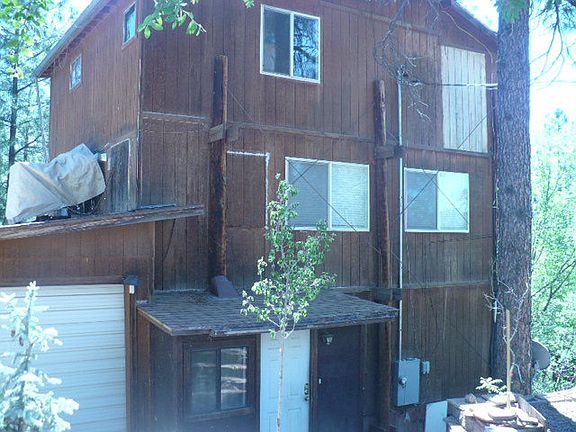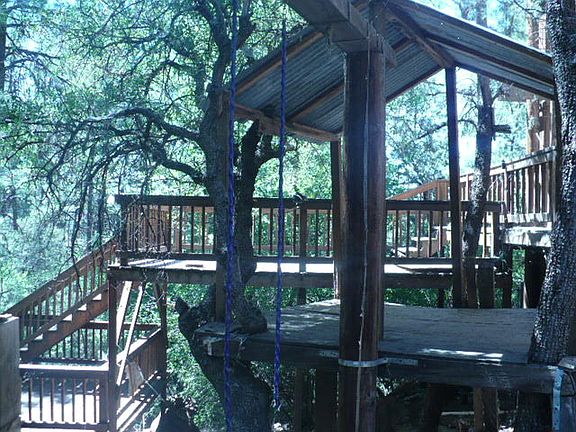 This house is infamously called the Pole House. Two bedrooms and a full bath on the lower level, kitchen/greatroom on second level and two bedrooms and two three quarter baths on the upper level. Located in the trees, there is a multi level deck and a tree house for the kids in the rear of the home. Good opportunity for a week end retreat and great escape from the summer heat.