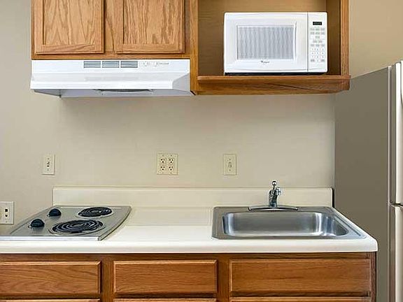 NO LEASE. NO DEPOSIT. PAY WEEKLY. Available at an affordable twenty-eight-day rate, this spacious studio at Woodspring Suites Tulsa is unlike any other! Complete with its own two-burner stovetop and microwave, this apartment alternative's modified kitchen allows you to cook up meals in a breeze. Spacious above-and-below cabinetry combines with a generous closet to ensure maximum space for your belongings. When you want to unwind, there is a flat screen t.v. with free cable that offers an extended channel line up and at least one premium movie channel. Comfortably located near HWY 51, you can easily access the area's finest assortment of shopping and dining options. We're just minutes away from local favorite restaurants like Johnny Carino's, On the Border Mexican Grill, and The Promenade Mall. Perfect for returning students, Factory workers, or Traveling medical professionals. Must pay full month in advance. 1 Bed: Weekly: Starting at $219.99 (plus tax) Monthly: Starting at $839.99 (plus tax) 2 Bed: Weekly: Starting at $269.99 (plus tax) Monthly: Starting at $1039.99 (plus tax) Floor Plan/Unit Features * Dining table with two chairs * Full-size bed * dresser and nightstand * Cable * Microwave * two burner stove-top * Refrigerator * Flat screen TV Property Amenities * Elevator * On site Parking * High Speed Internet Available * 24-Hour coin operated Laundry Facility * Vending Machines * Controlled Access * Bi-Weekly Housekeeping Pet Policy: Domesticated Cats and Dogs allowed Non-Refundable Pet Fee Check us out today! 3415 S Sheridan Rd Tulsa, OK 74145
