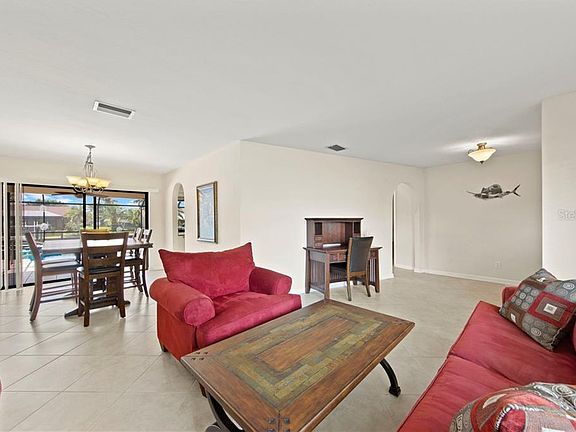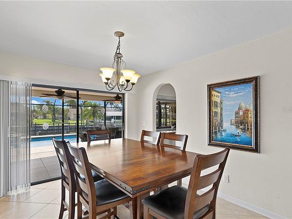 One or more photo(s) has been virtually staged. Are you looking for quick Gulf access with no bridges? Then this is your new home! This Palaco Grande home is perfect for water lovers. Do not let the sq footage fool you. This family room design offers 3 bedrooms, 2 baths along with spacious family and living rooms. The Master retreat offers a spacious walk in closet along with a wood vanity with granite top. This combination is carried on in the guest bath which serves two guest bedrooms. The kitchen features light cabinets, stainless steel appliances and granite counter tops. From here as from several other rooms in this lovely home you can enjoy fantastic views of the large heated pool and spa area and the Carnation canal. Besides the concrete dock you also have you own boat dock with a lift and canopy. With 100 feet of water frontage of which 80 feet was just replaced in 2018 you have lots of room to enjoy the Florida boating lifestyle. Enjoy fresh vegetables from your own yard (Avocado) and there is plenty of room to plant more. In 2018 the home received a roof upgrade to a beautiful metal roof at which time the solar pool heater was installed. Check out the virtual tour - then make arrangements to see it in person!