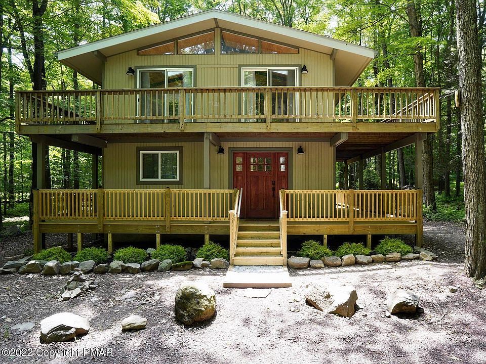 ABSOLUTELY CHARMING! An exquisite home in the heart of the Gold Star Community of Locust Lake Village. This gorgeous home is unique and definitely a must see! It has all the bells and whistles and all of the modern conveniences for your pleasure. Huge back deck for entertaining and a jacuzzi to boot! Second floor wrap-around deck with sliders from every room. Just steps away from Pines Lake. Short Term Rentals are allowed.