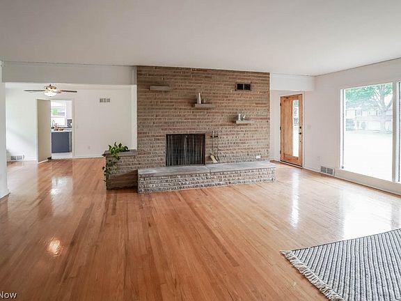 This sprawling 4 bedroom, 2.5 bath ranch sits on a charming street, just a short walk to a neighborhood park complete with basketball and tennis courts, plus a playground! Step into the inviting living room that exudes mid-century charm, featuring floor to ceiling windows, a cozy wood burning fireplace with a brick surround, and gleaming hardwood floors that flow into the adjacent dining room with a trendy accent wall. Prepare your favorite meals in the well equipped kitchen, boasting a deep single basin sink, tiled backsplash, center island, and stainless steel appliances.