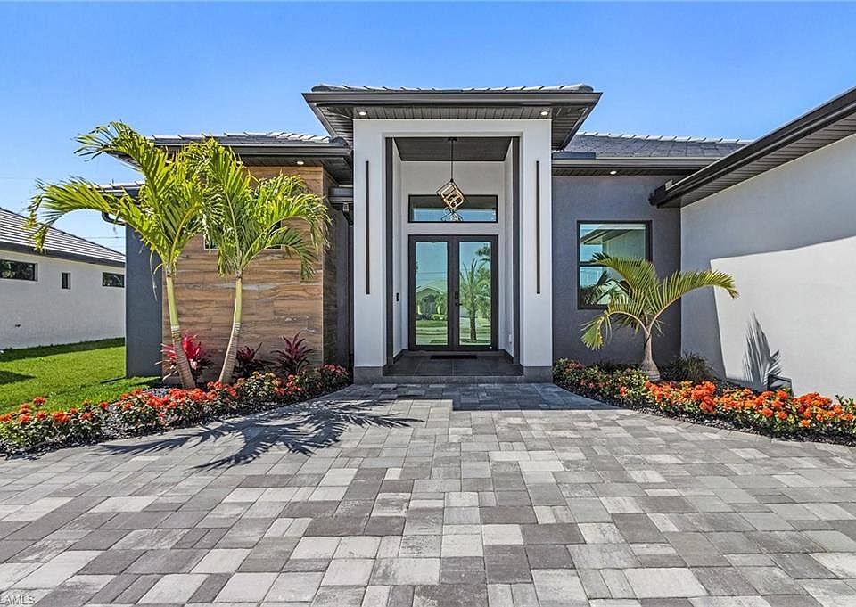 New Construction Pool Home!!! This home is full of custom upgrades including the modern "Chef's" kitchen which features a breakfast island, gorgeous custom cabinets, exotic level granite counter tops, and stainless-steel appliances. House has amazing porcelain tile and 10’ to 14’ ceilings throughout a luxurious open floor plan, a stunning media wall embracing a 74” electric fireplace, motorized blinds, and smart toilets. A great master suite which includes 2 her/his closets, dual sinks, nice shower, and a luxurious freestanding tub. Entertain at this outdoor oasis with built in grill or prepare feasts for your guests in this fabulous outdoor kitchen. Swim in your pool, or just enjoy a quiet evening by the fireplace on the lanai. Bike lane by the property and just few steps to Joe Stonis Park with tennis and shuffleboard court, walking paths, picnic shelter with BBQ, and fitness station. Located in a very quiet and desirable neighborhood of the Southwest area.
