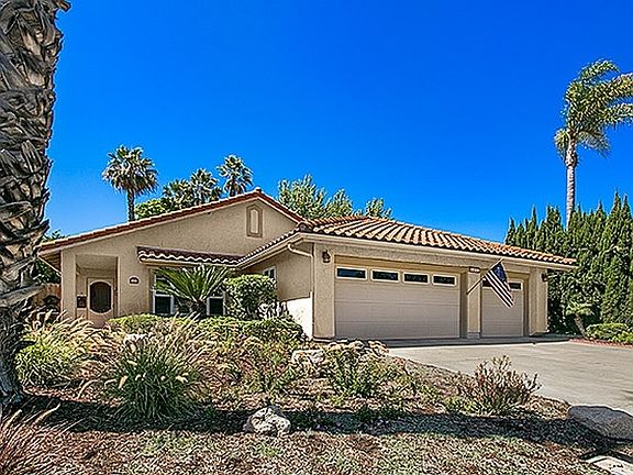 A beautiful single level home in Parkside situated on an oversized lot in coveted La Costa just a short block to the community recreation center and pool at Stagecoach park and the top rated schools of Mission Estancia Elementary and La Costa Canyon High School. The home has been thoroughly renovated with a newer kitchen complete with shaker style cabinets, granite countertops complete with island and a can lights and a huge skylight. The home also features a mix of oak hardwood and carpet throughout and has completely renovated bathrooms including newer cabinets, granite countertops, natural stone tile flooring & tile/bath surround. The home also features pitched ceilings in the formal living and dining rooms, an enclosed sunroom, central AC and a whole house fan (just installed) and a three car garage with linoleum flooring and a ton of storage. The backyard is a complete dream with a resort styled oversized pool (deep end is in the middle so it is perfect for fun activities like pool volleyball), generous side yards (with a beautiful rose garden), paver patio with hot tub, new complete fence and complete privacy. Located close to a ton of shopping including the New La Costa Town Center and just a few blocks to other amenities such as Sprouts, coffee shop, restaurants, medical and dental offices and more. -No HOA or Mello-Moos Fees. Welcome Home.