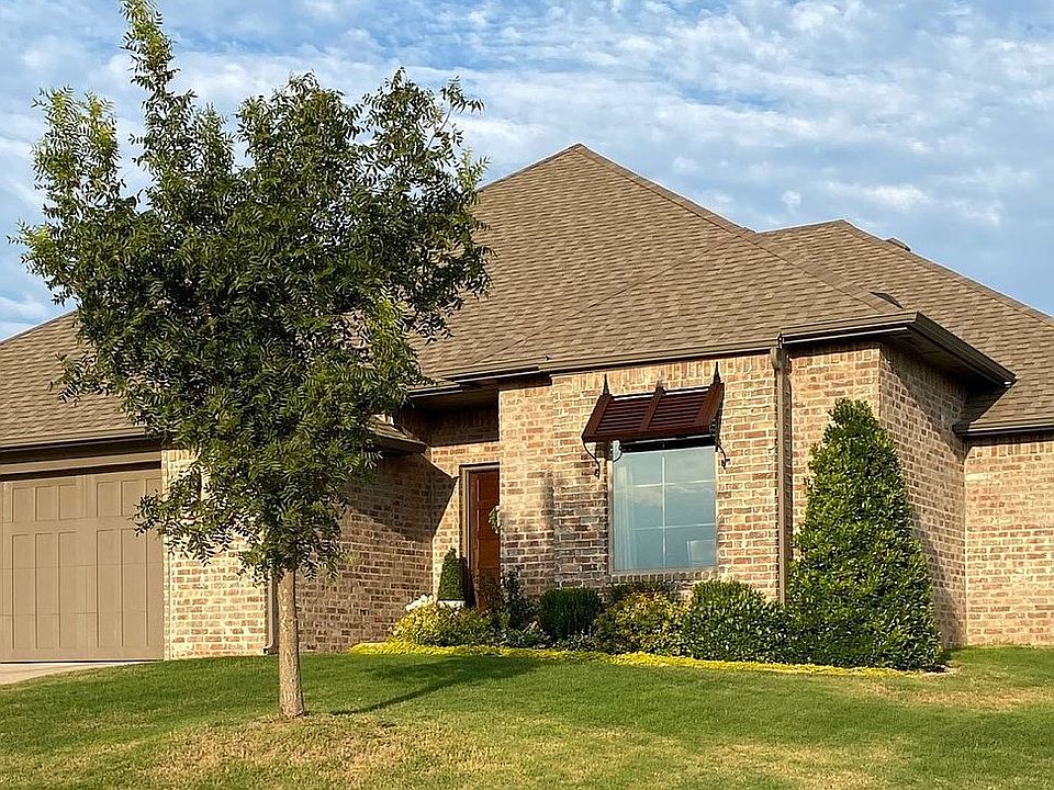 All brick 3 bedroom / 2 bath open layout with hand scraped 5-inch hickory wood floors and gas fireplace. Kitchen with a gas range, granite counters, large island and upgraded Professional Series appliances. Refrigerator stays with the home. Dining room at the front of the house and breakfast area just past the kitchen. The master has a trey ceiling, spa bath with separate tub, walk-in shower, double sink vanity, granite countertops and walk in closet. Beautifully landscaped yard. Covered patio with a gas line for grilling. Oversized 2 car garage with side door for easy access to the back yard. Sprinkler System & Security System